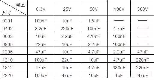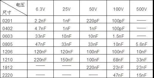 容量精度在10%左右,容量規(guī)模較寬,慣例100PF~47uF能出產。下表給出了X7R電容器可選取的容量規(guī)模最大值。
